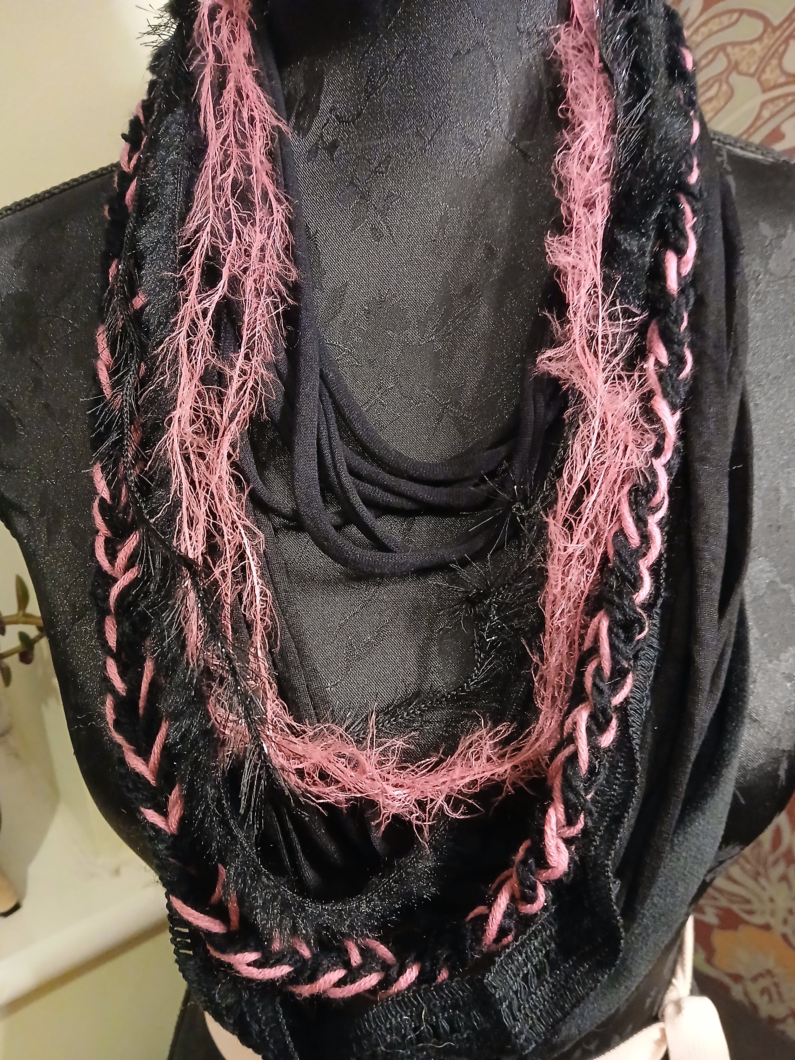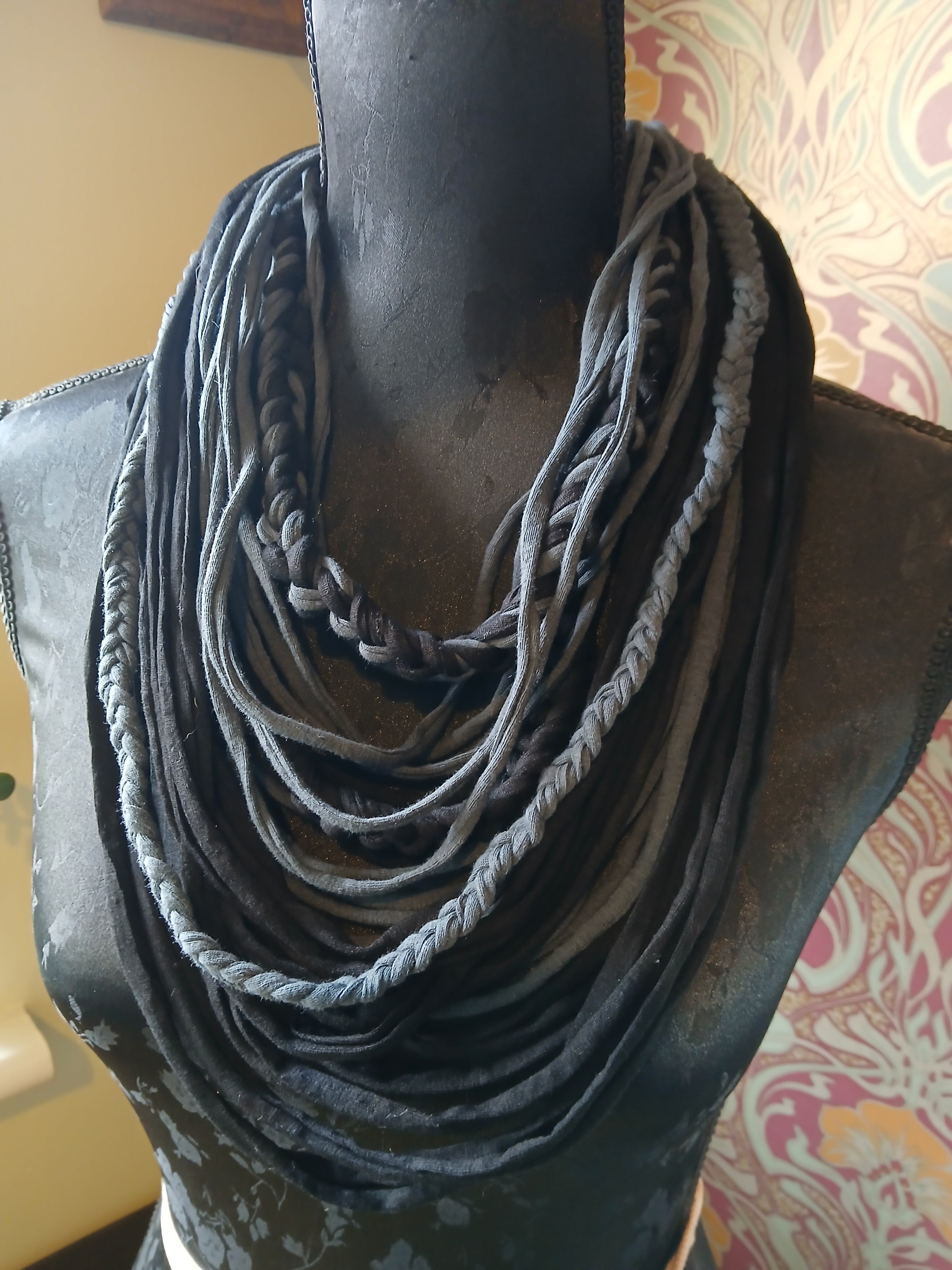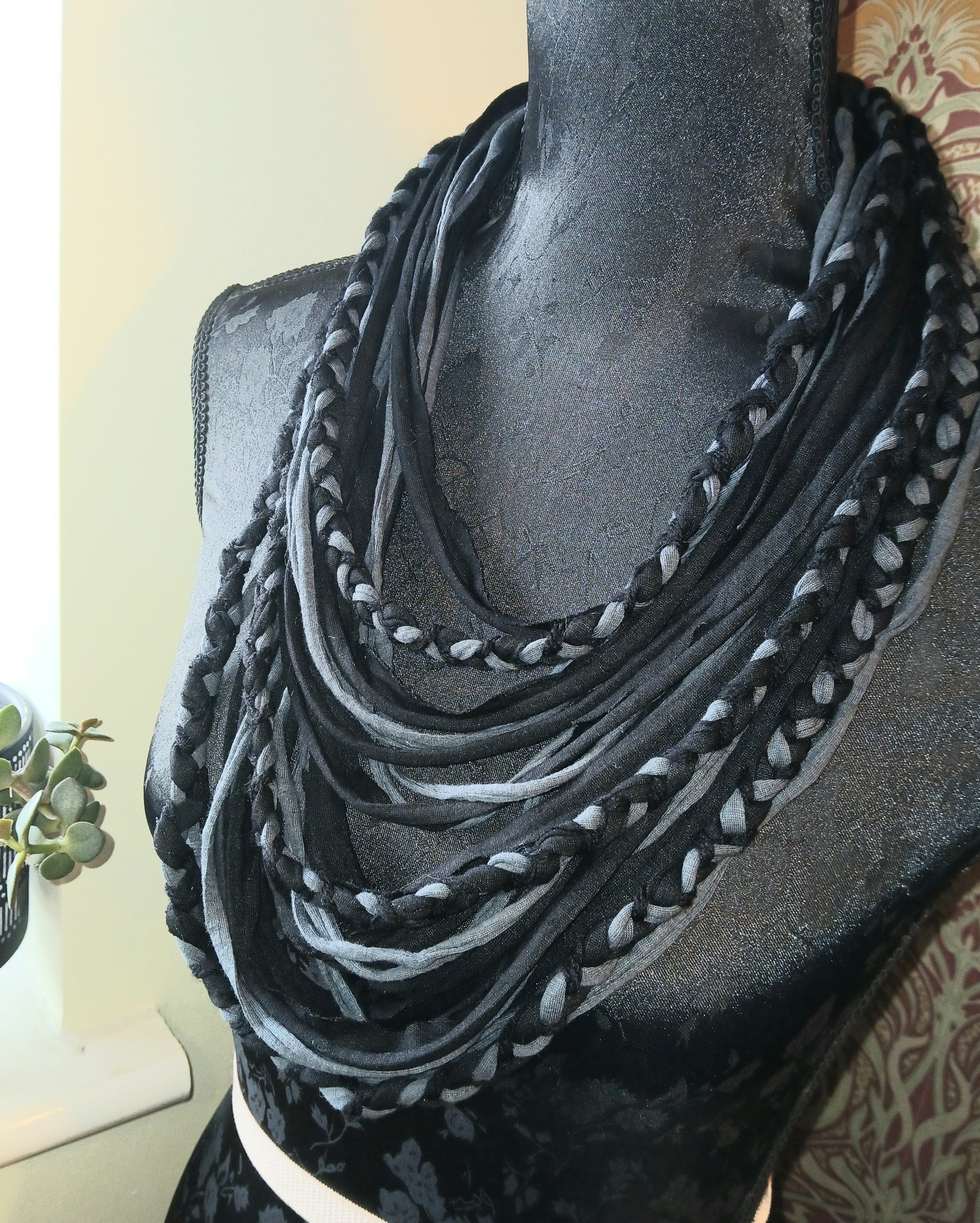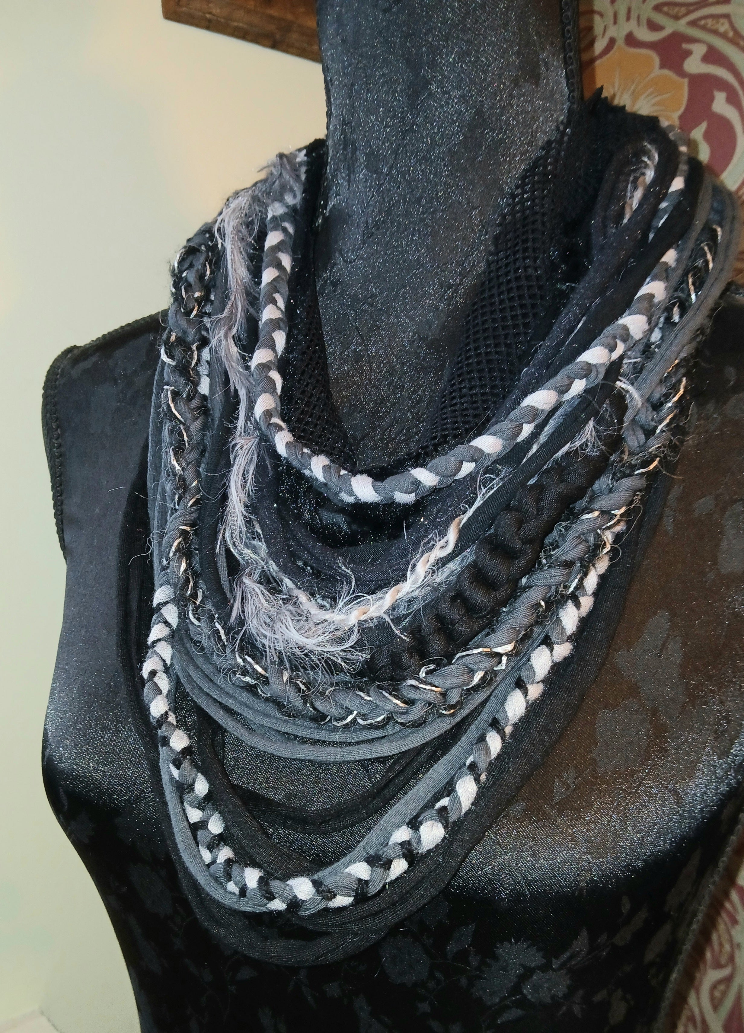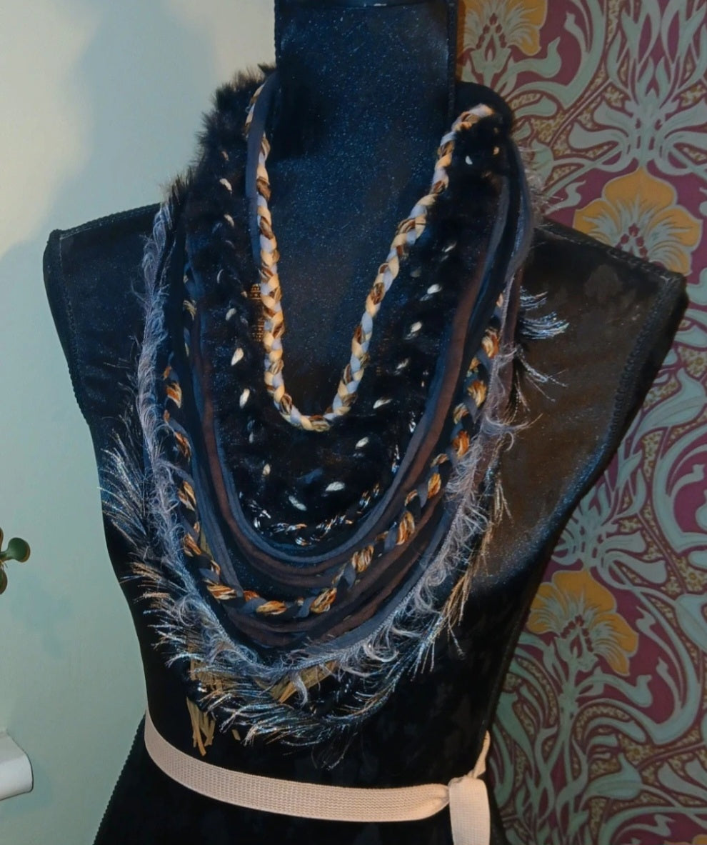 • Ashen, Gothic/boho Handmade Cowl Length Infinity Scarf