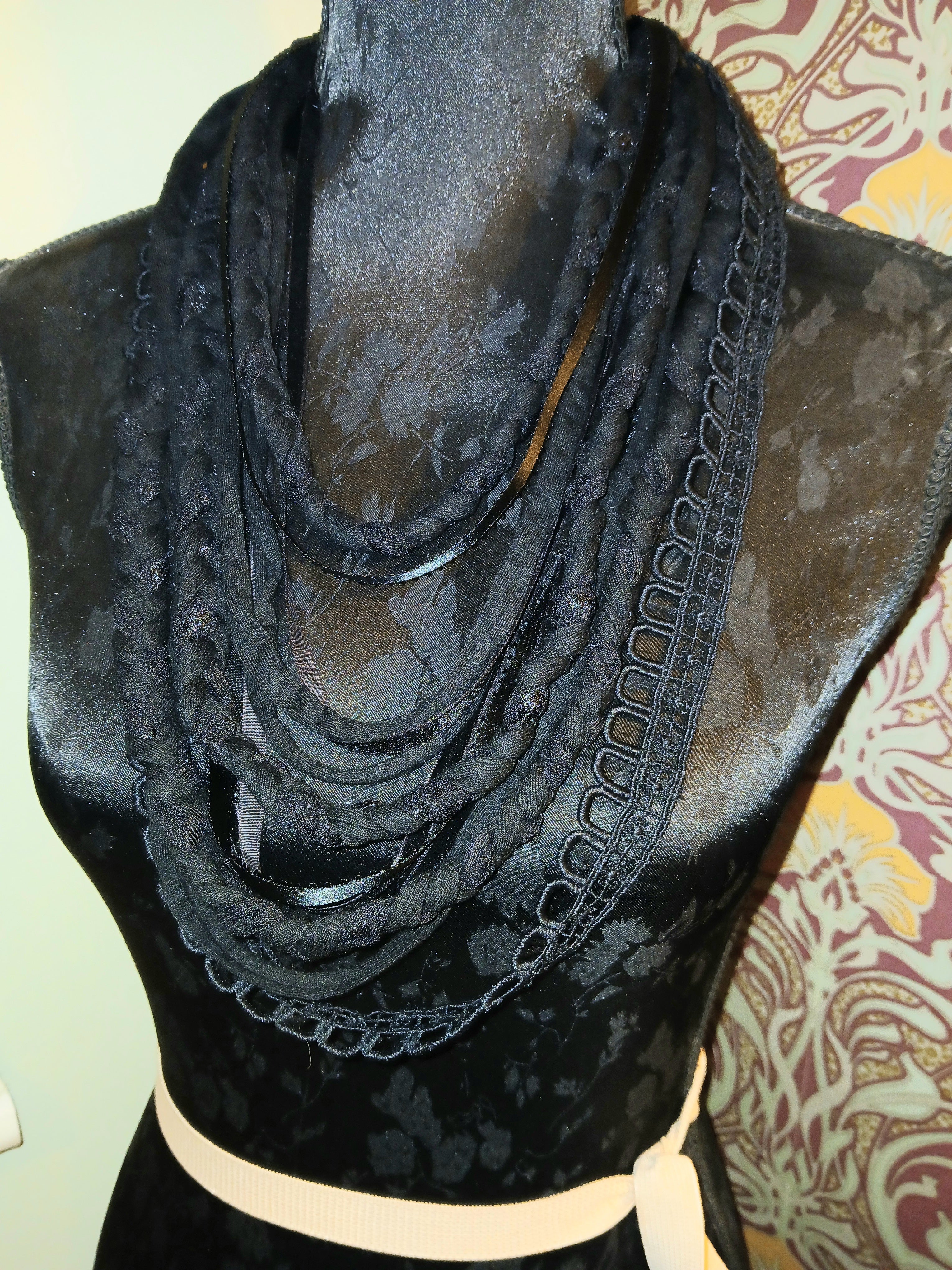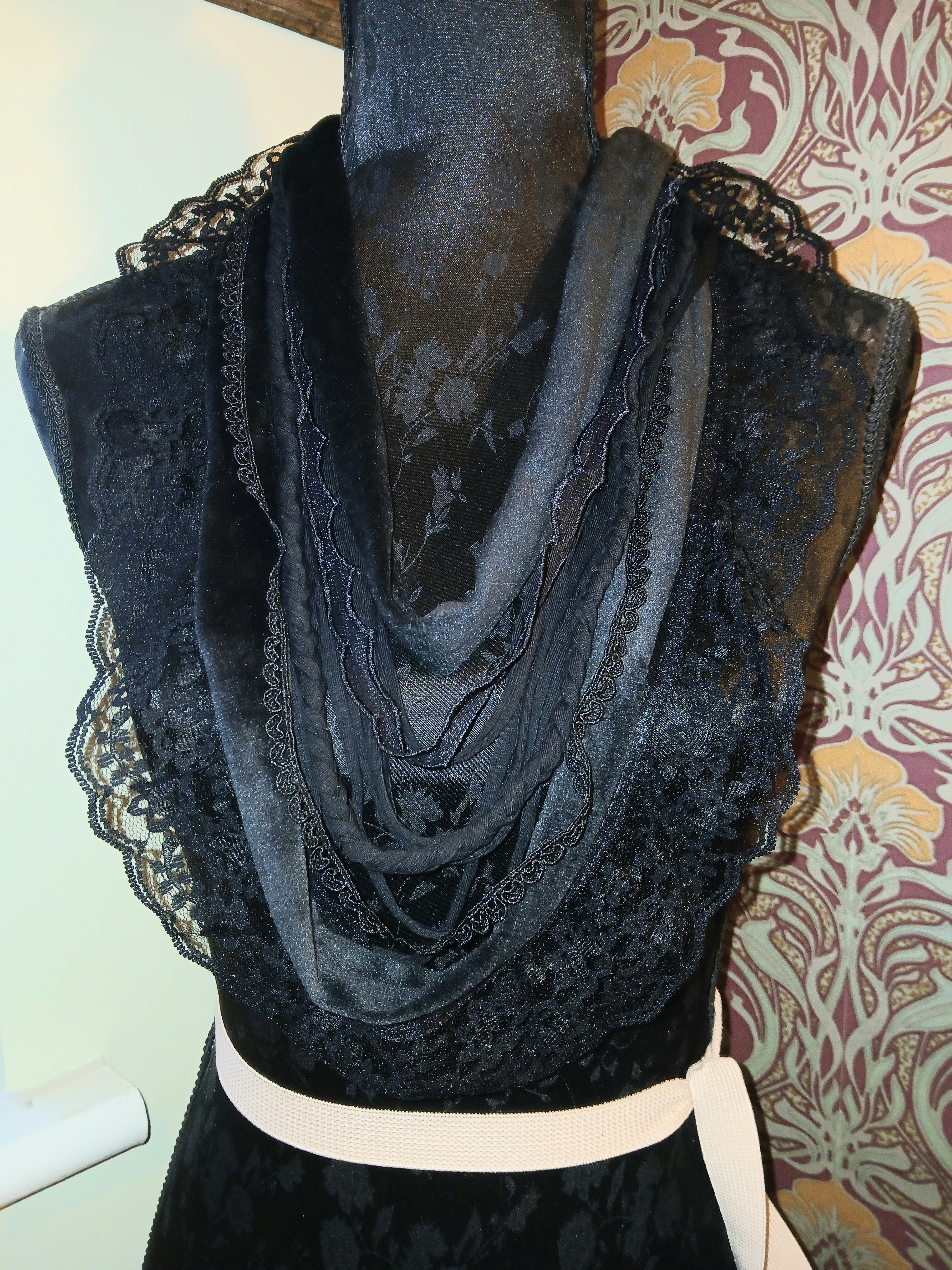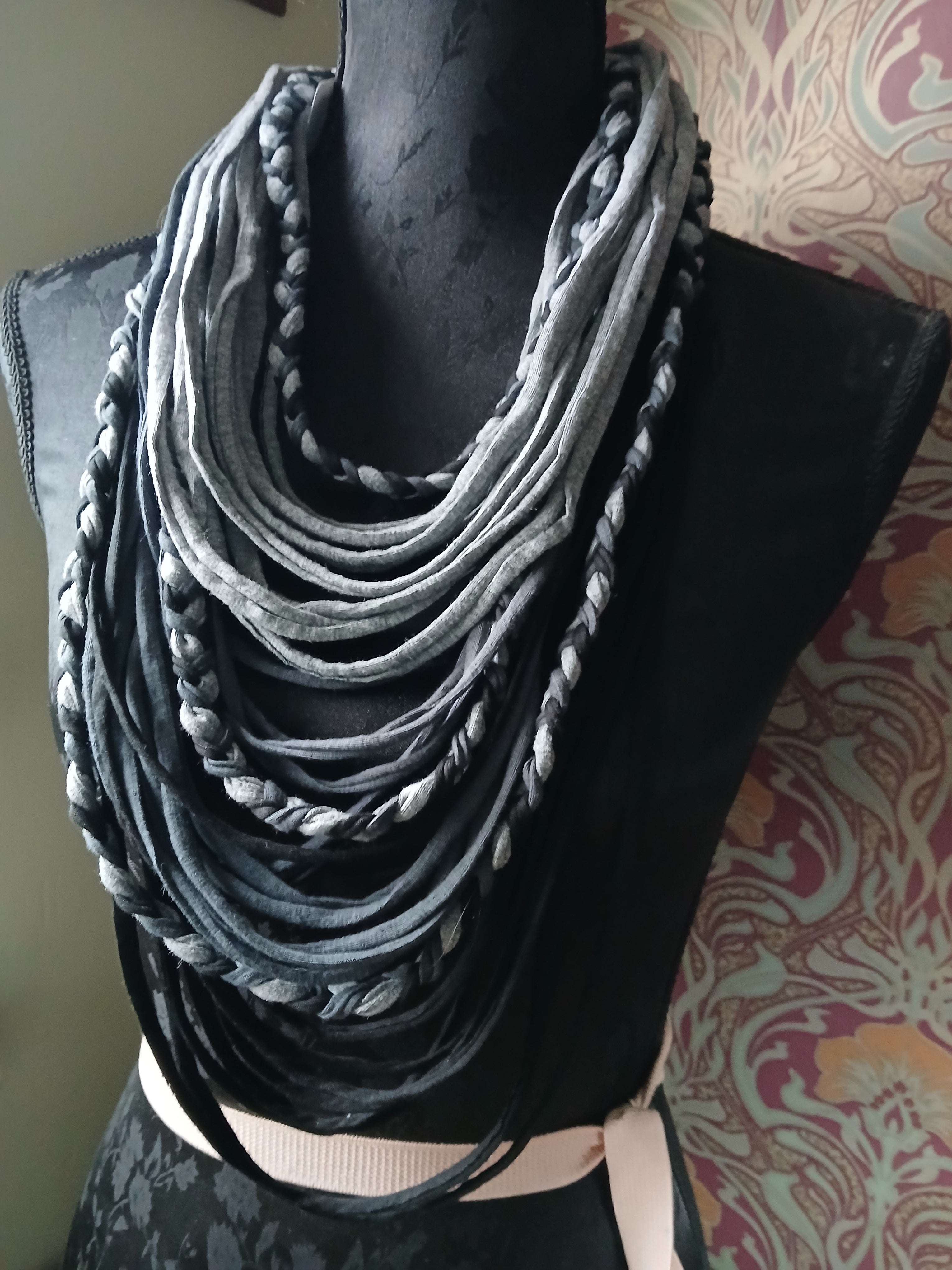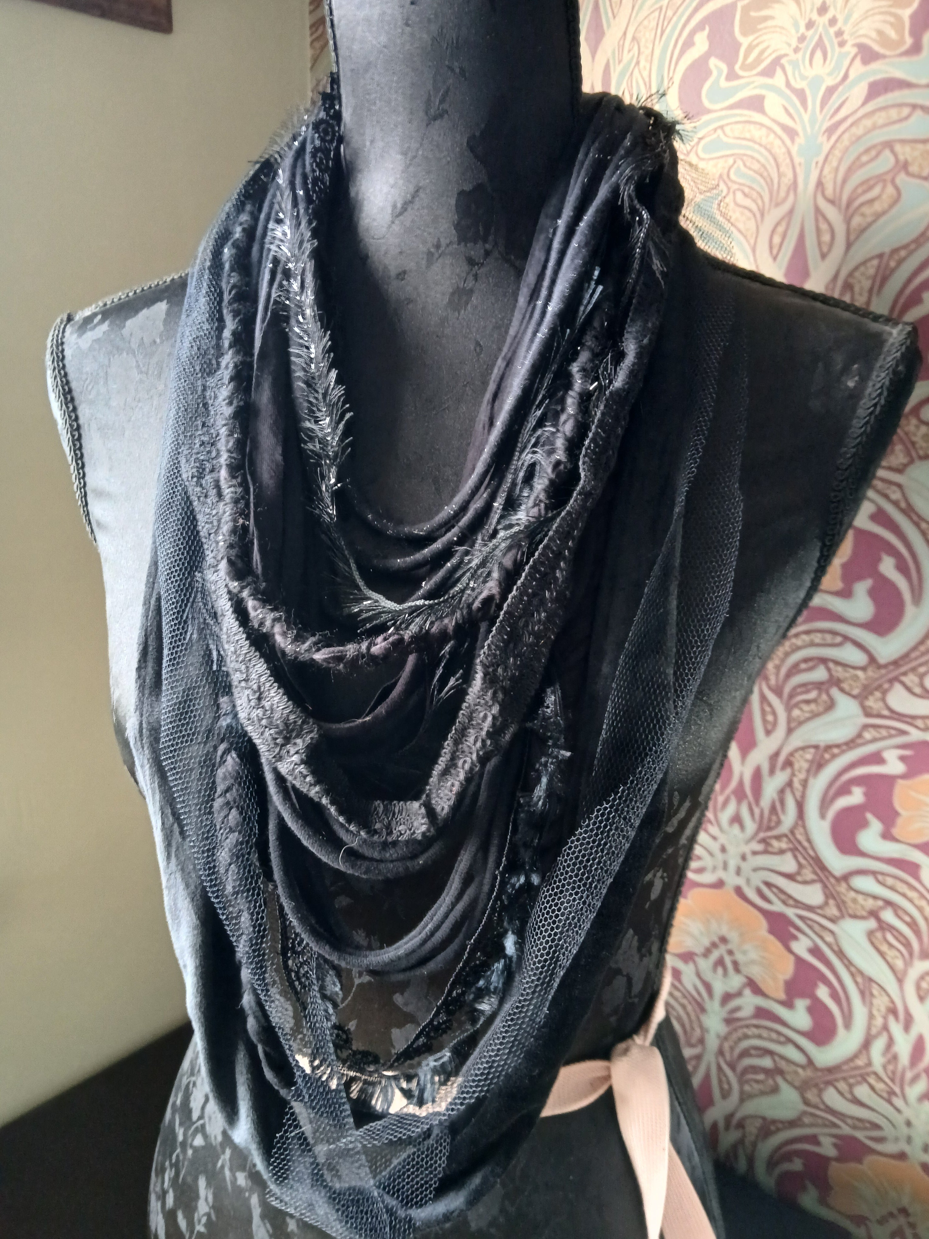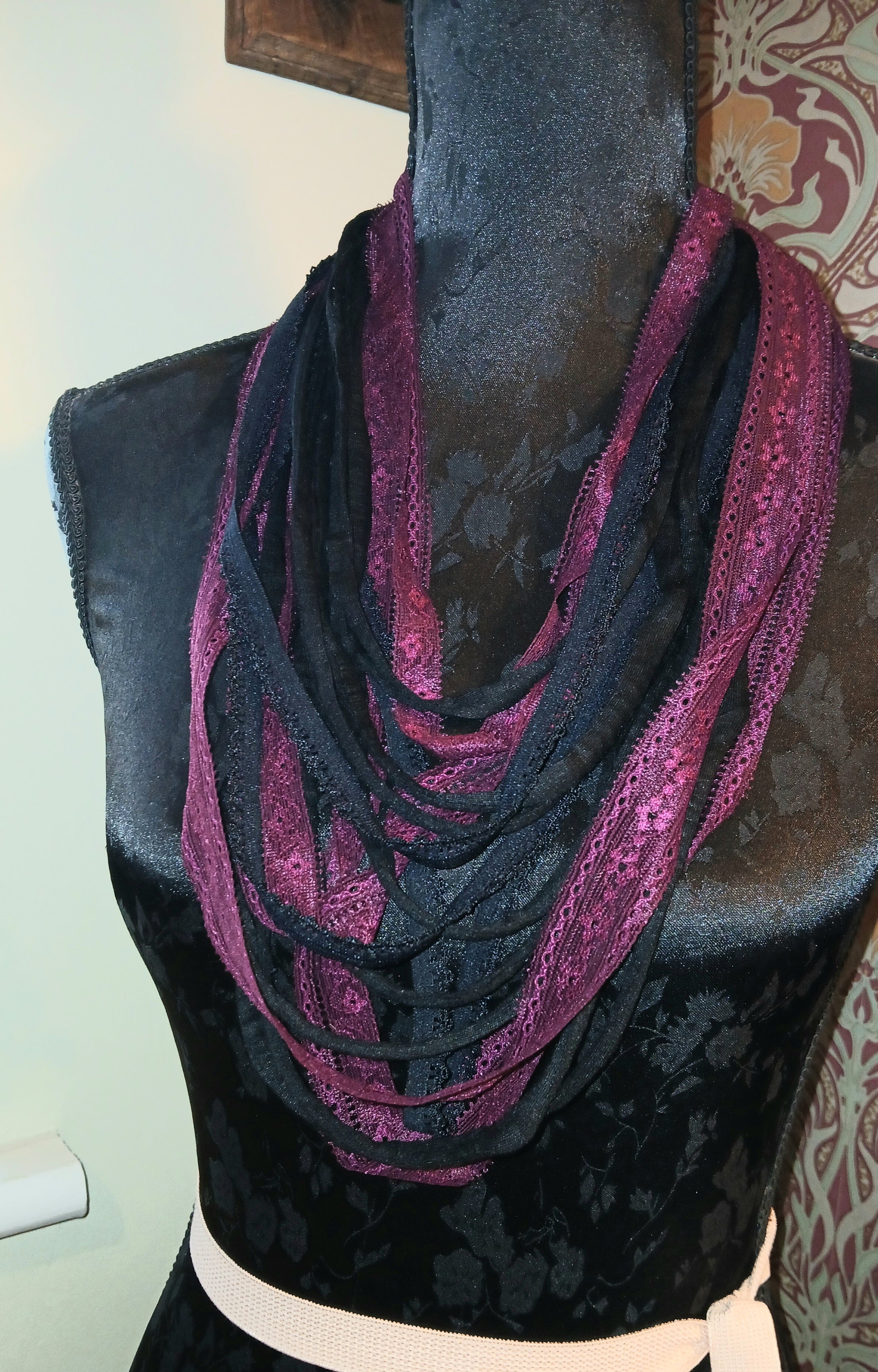 • Ashen, Gothic/boho Handmade Cowl Length Infinity Scarf