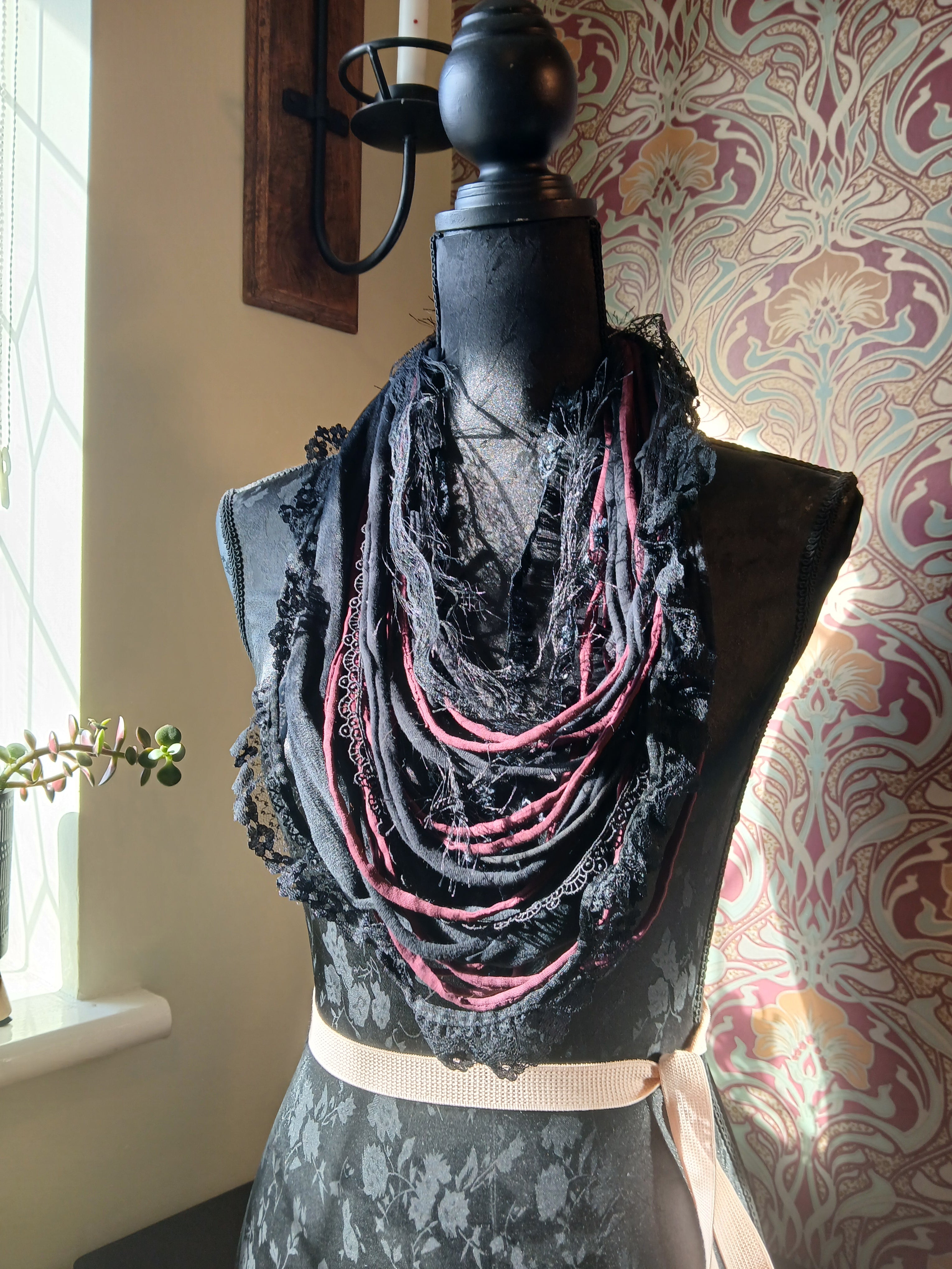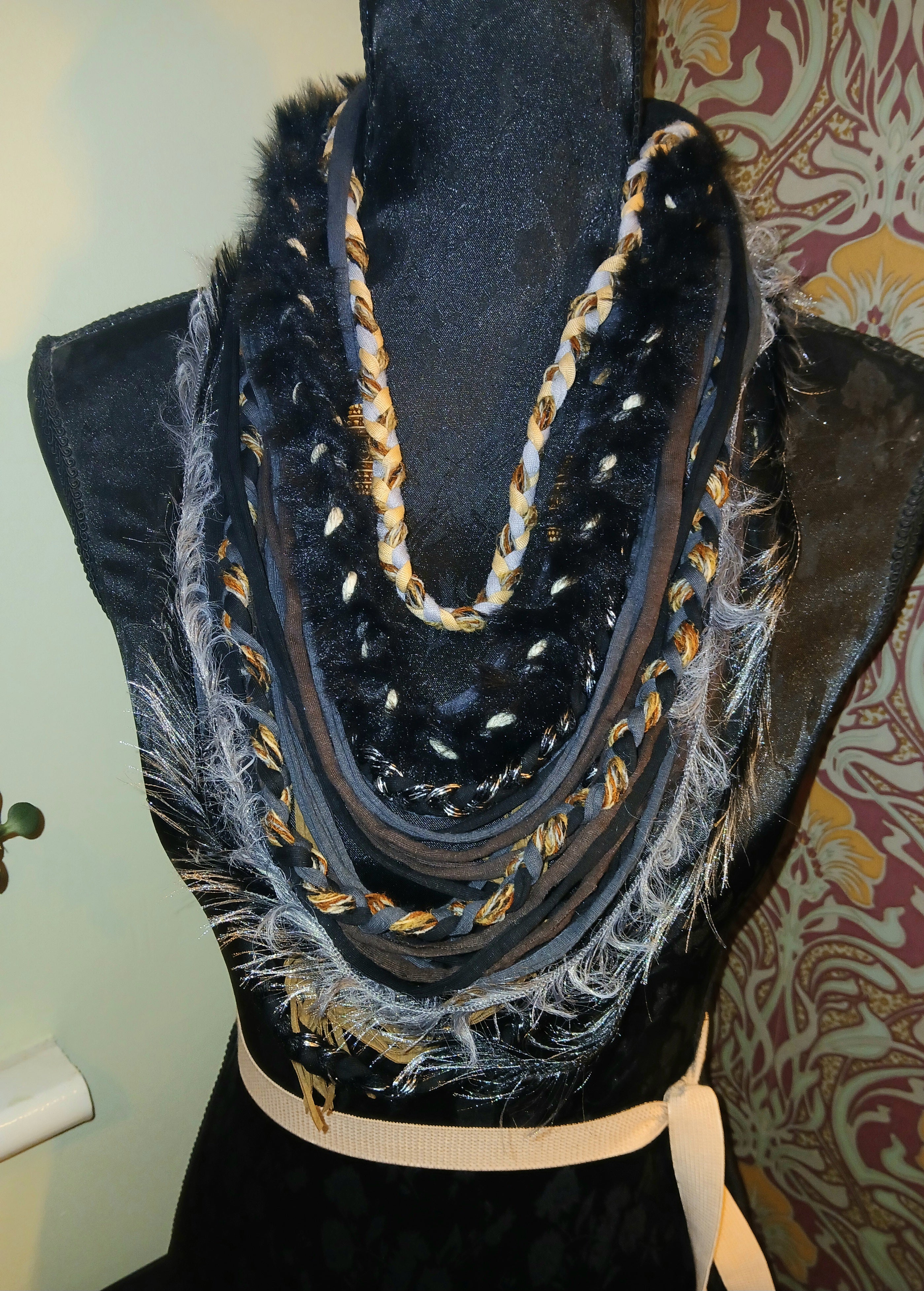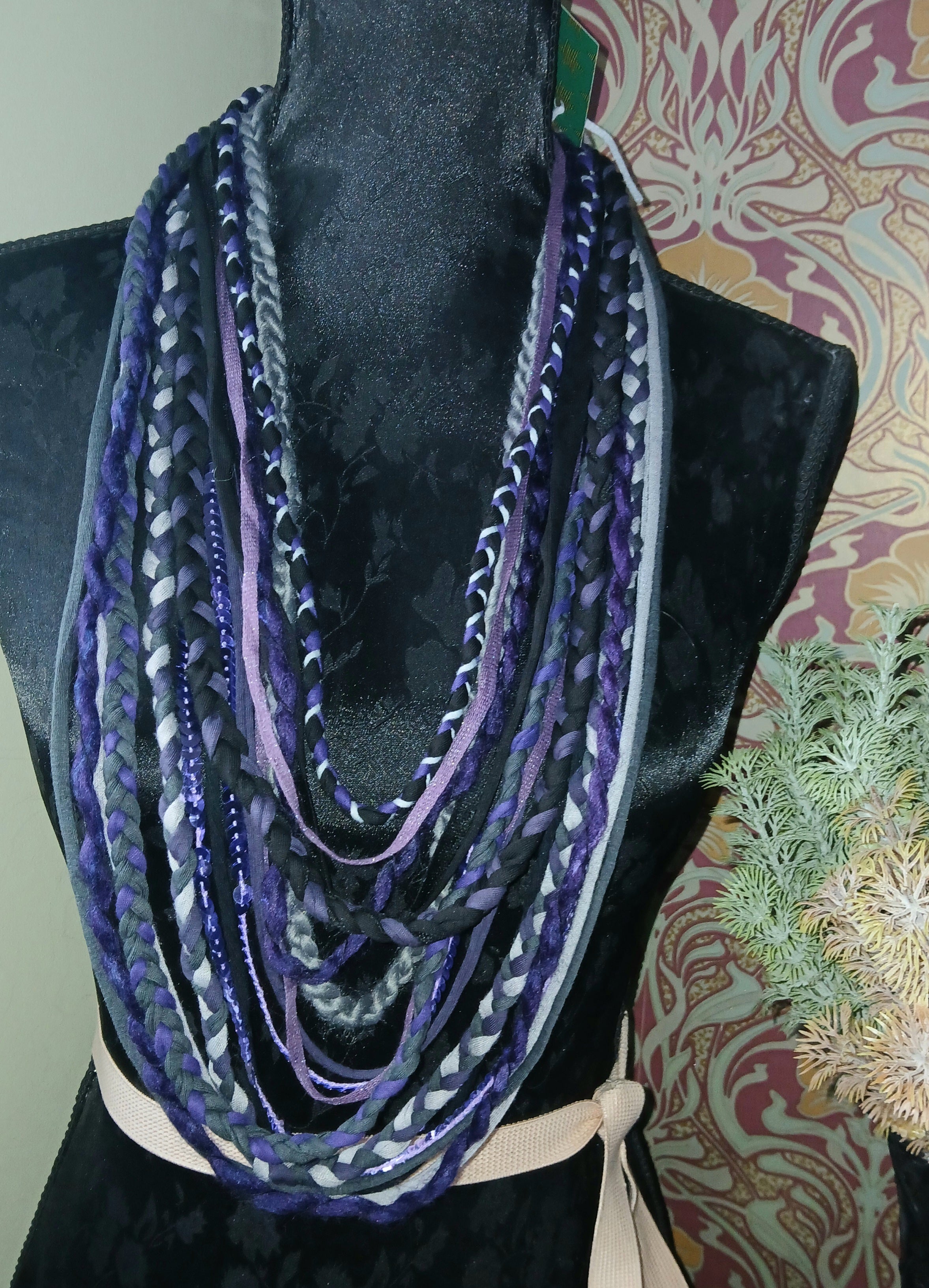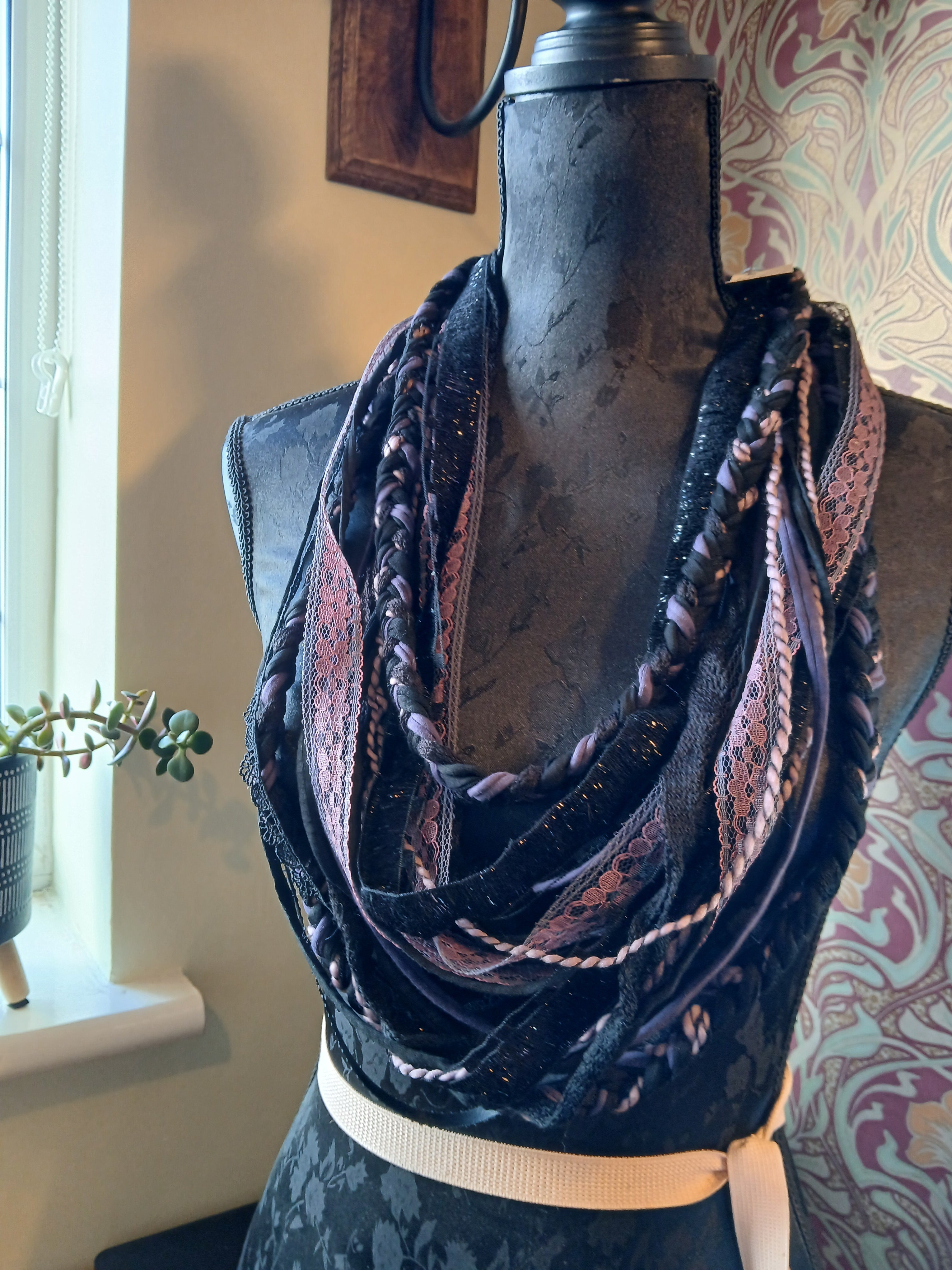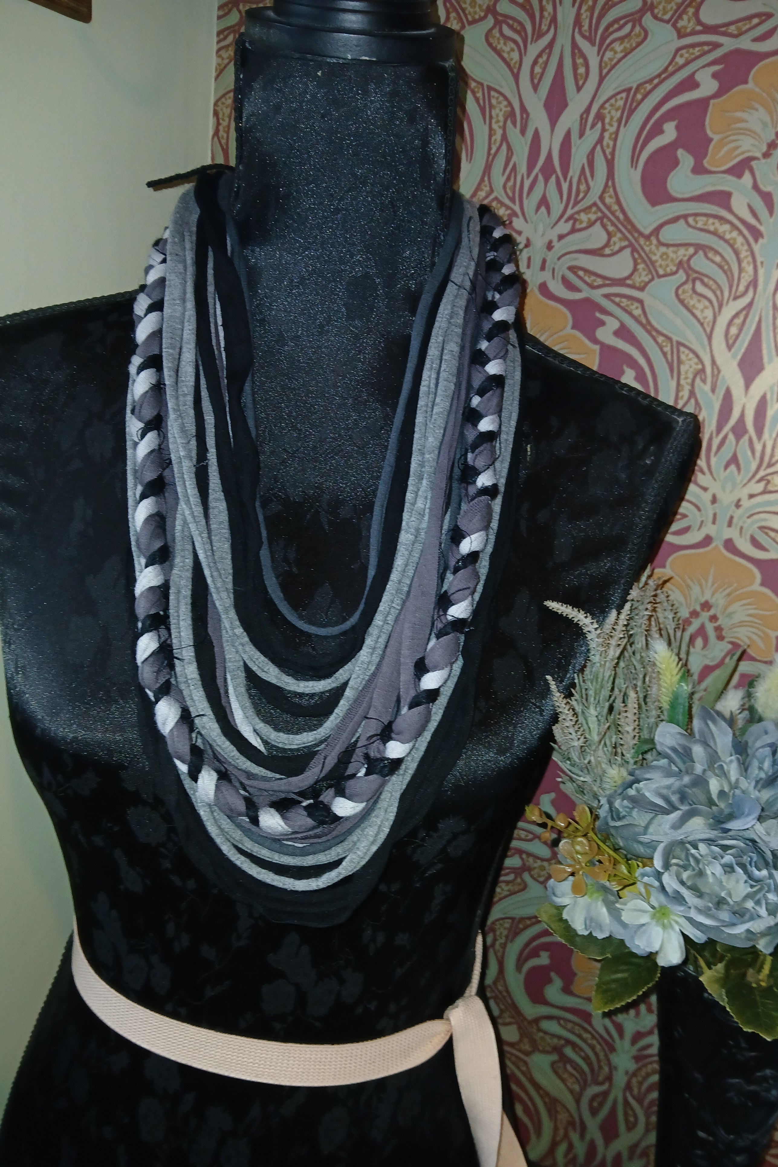 • Ashen, Gothic/boho Handmade Cowl Length Infinity Scarf