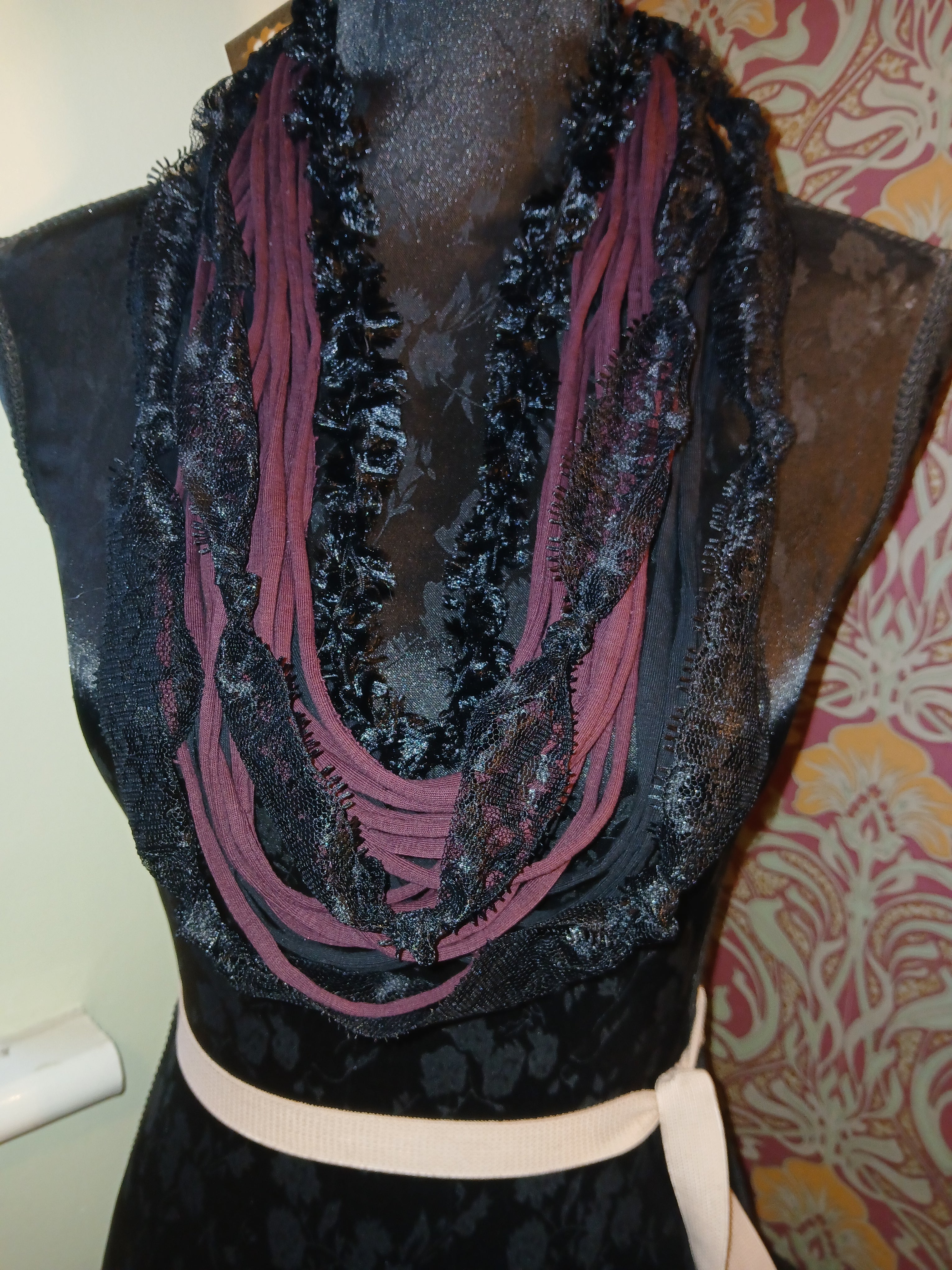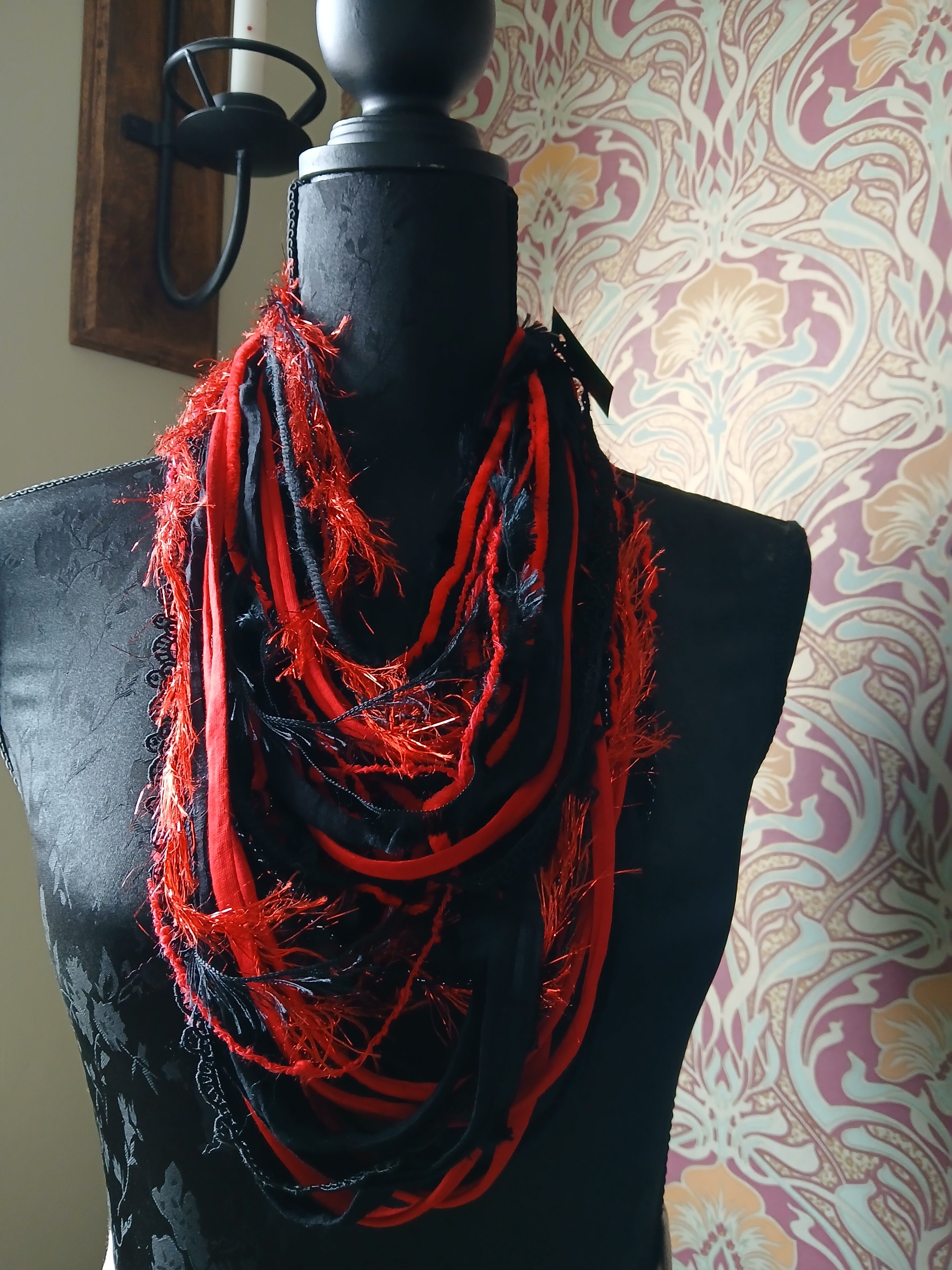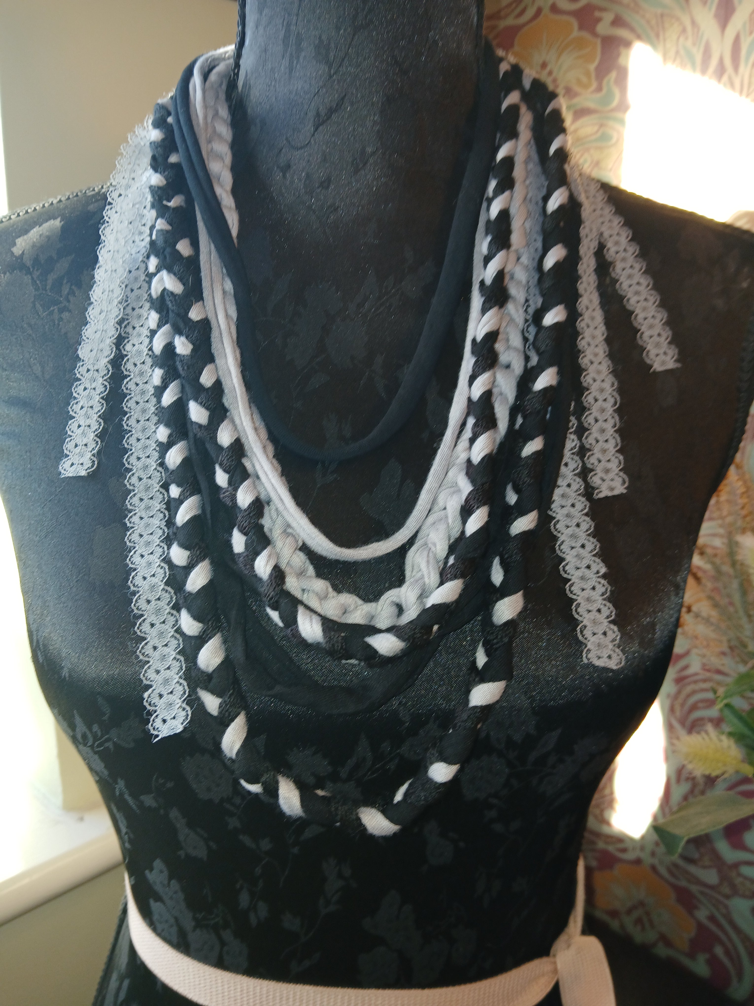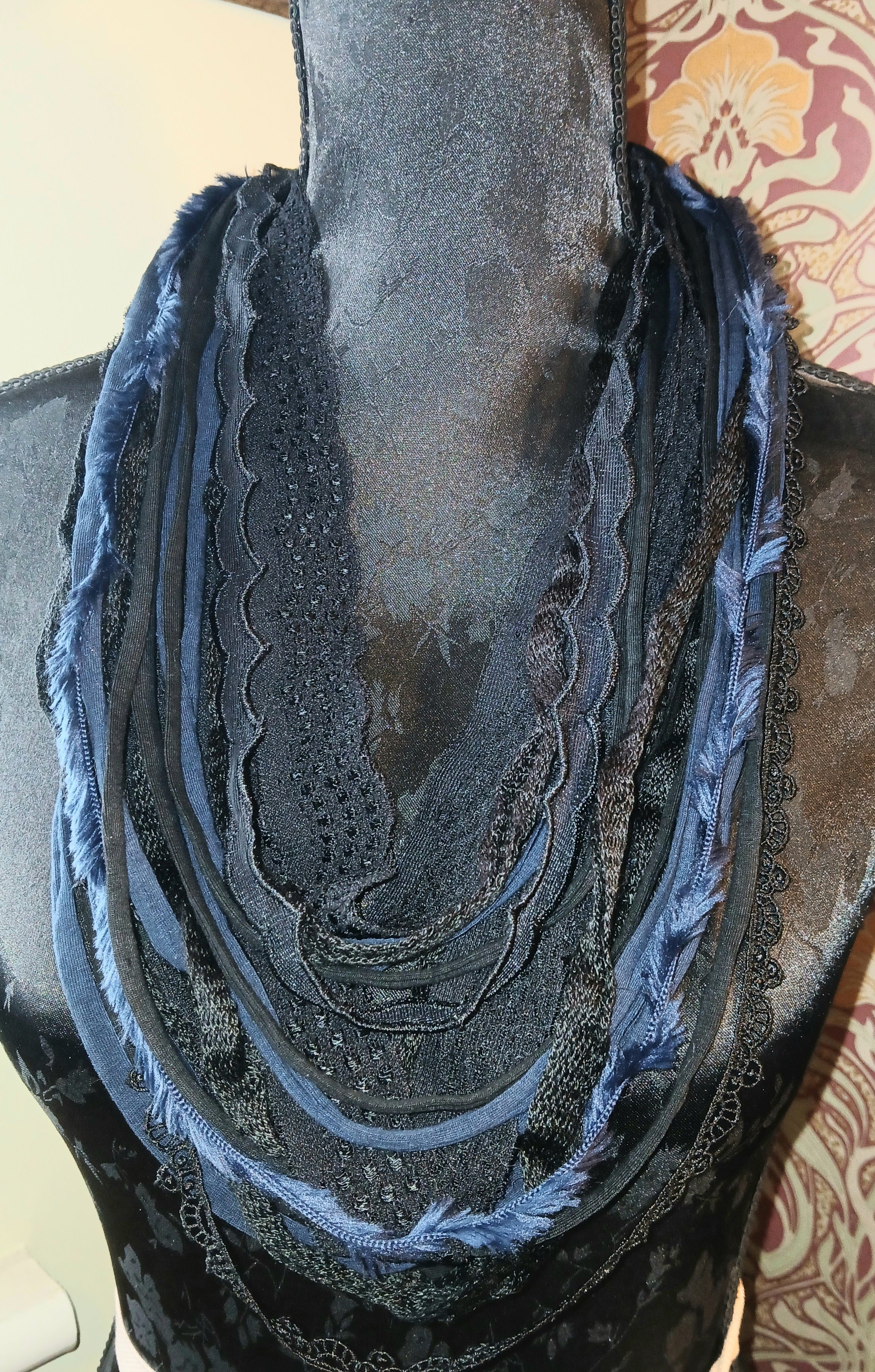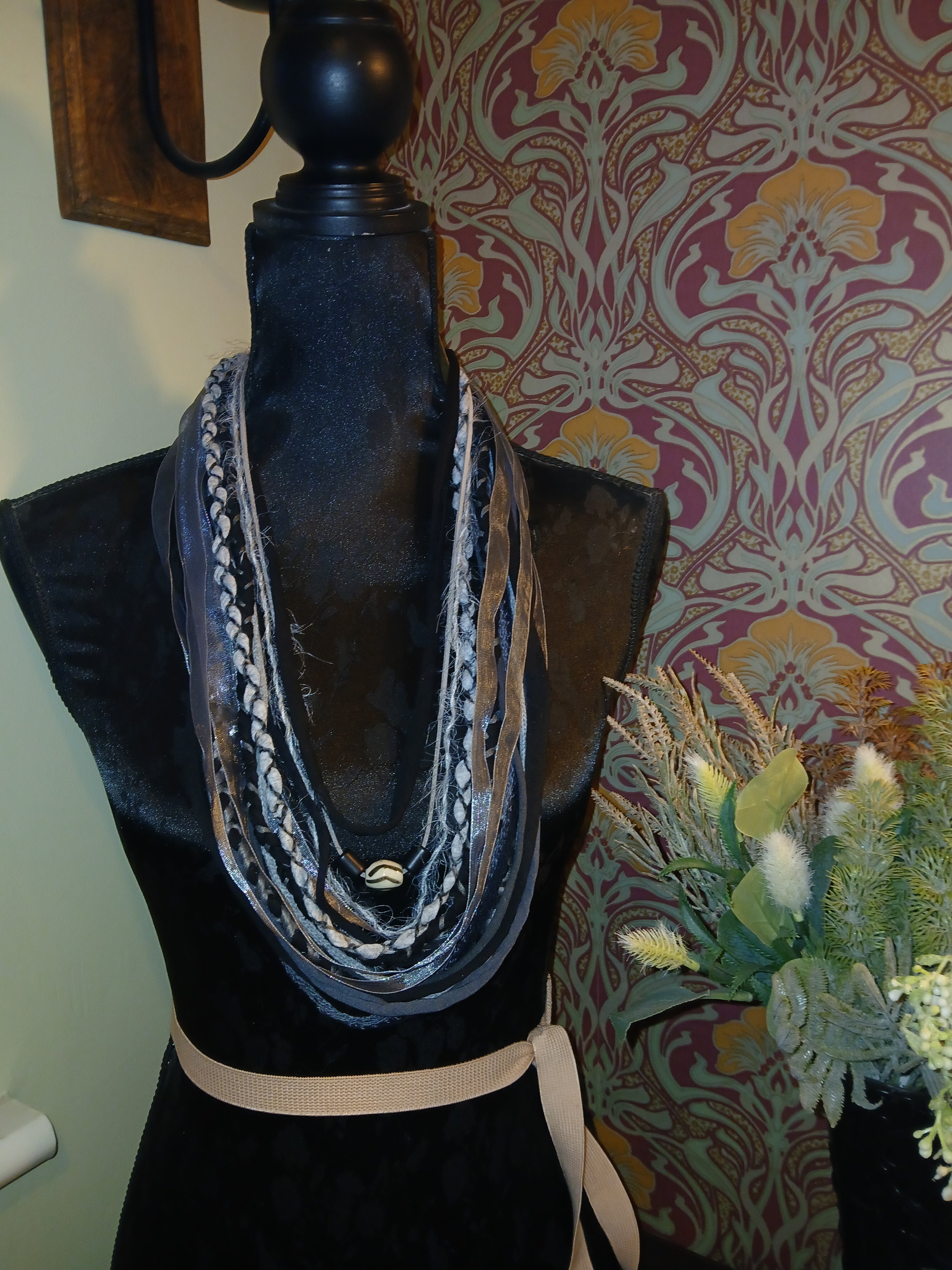 • Ashen, Gothic/boho Handmade Cowl Length Infinity Scarf