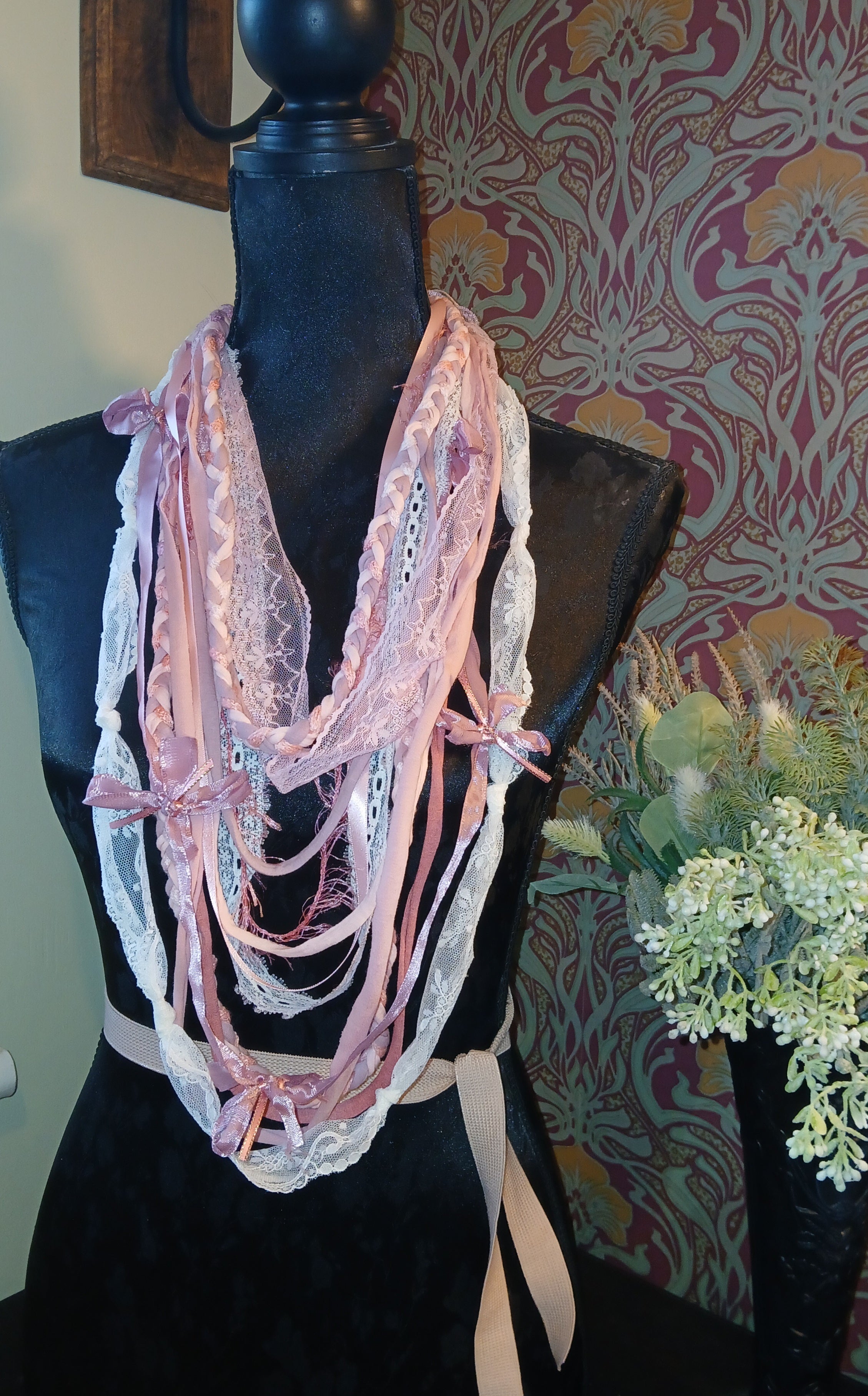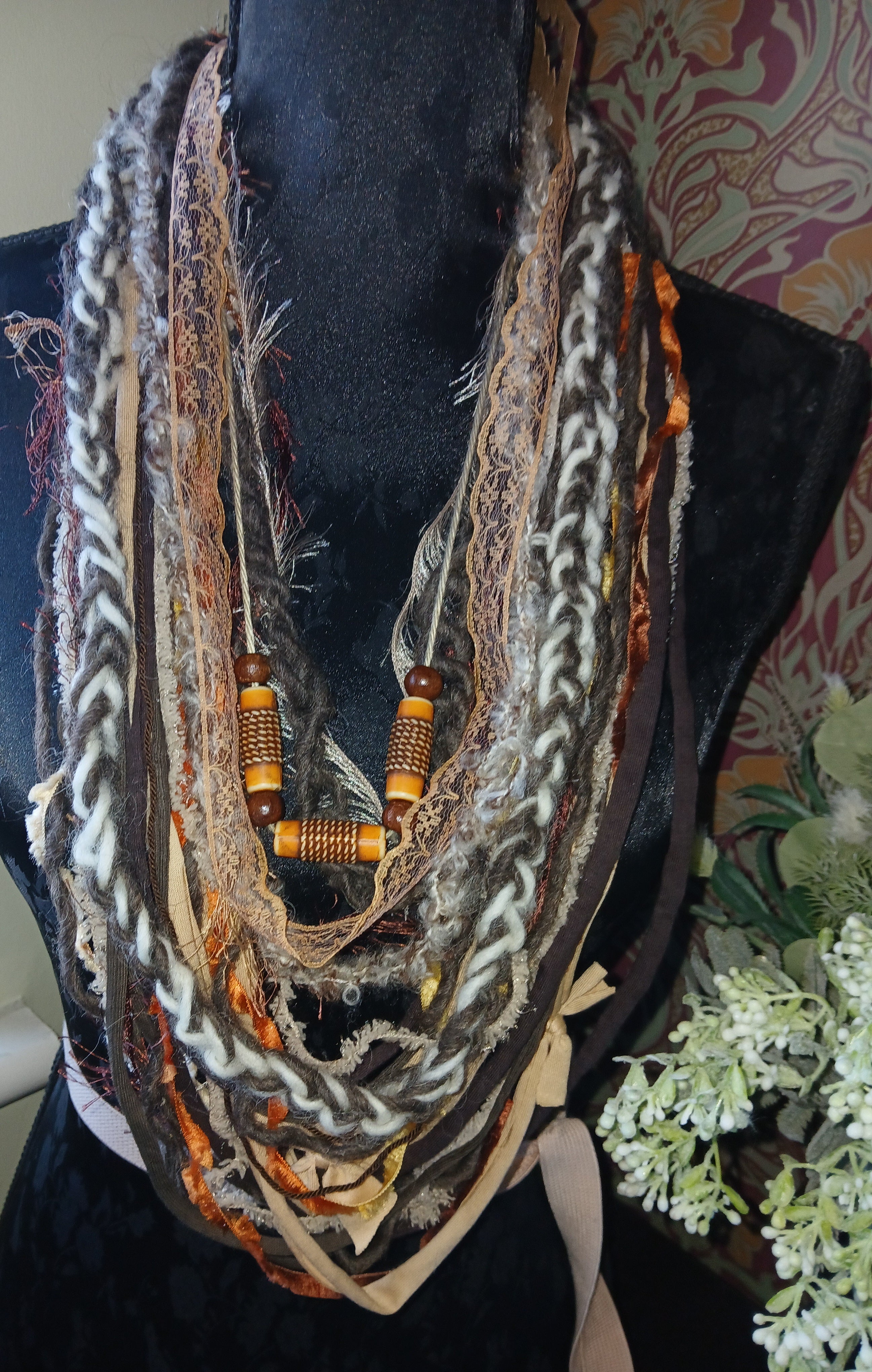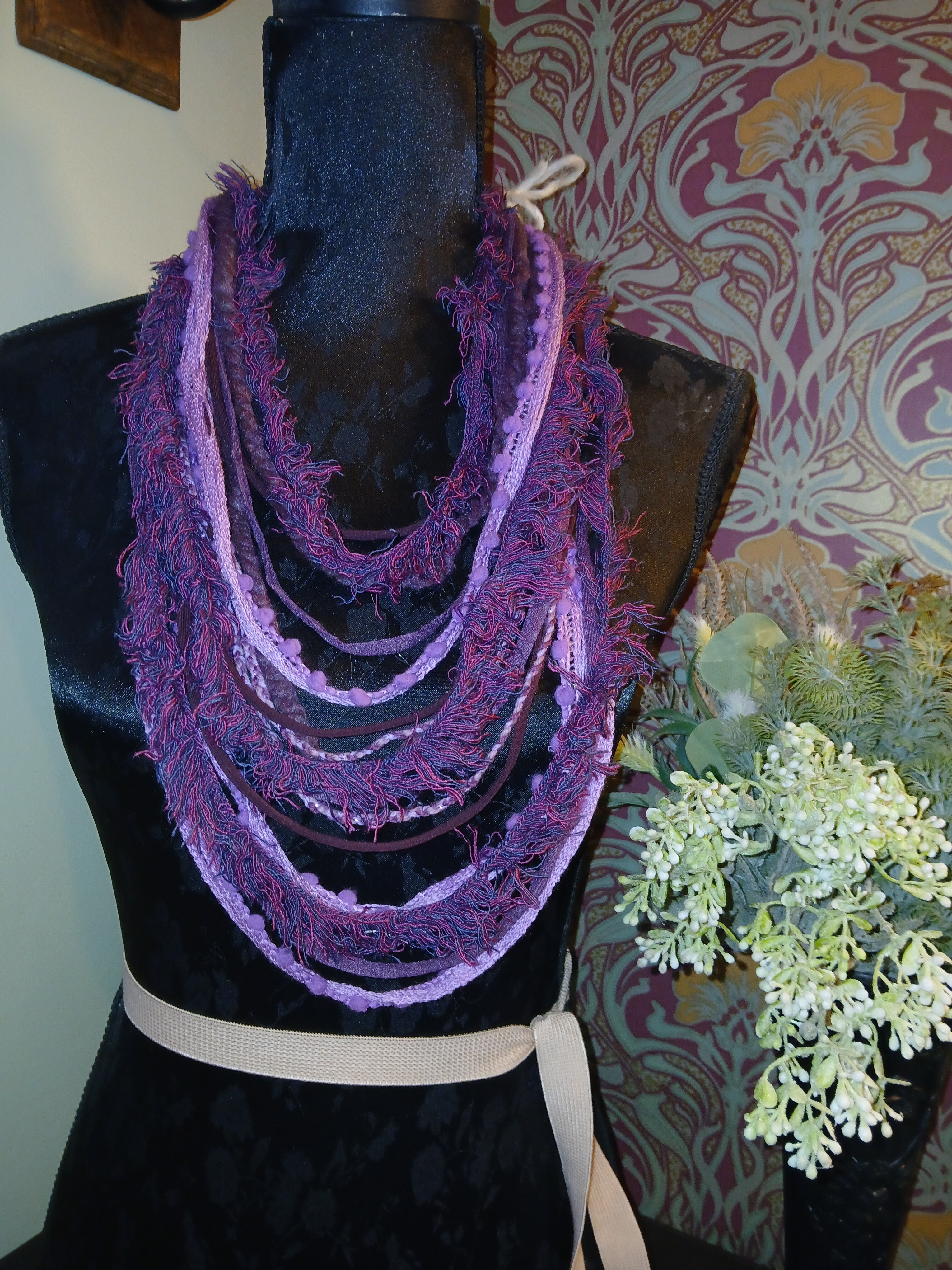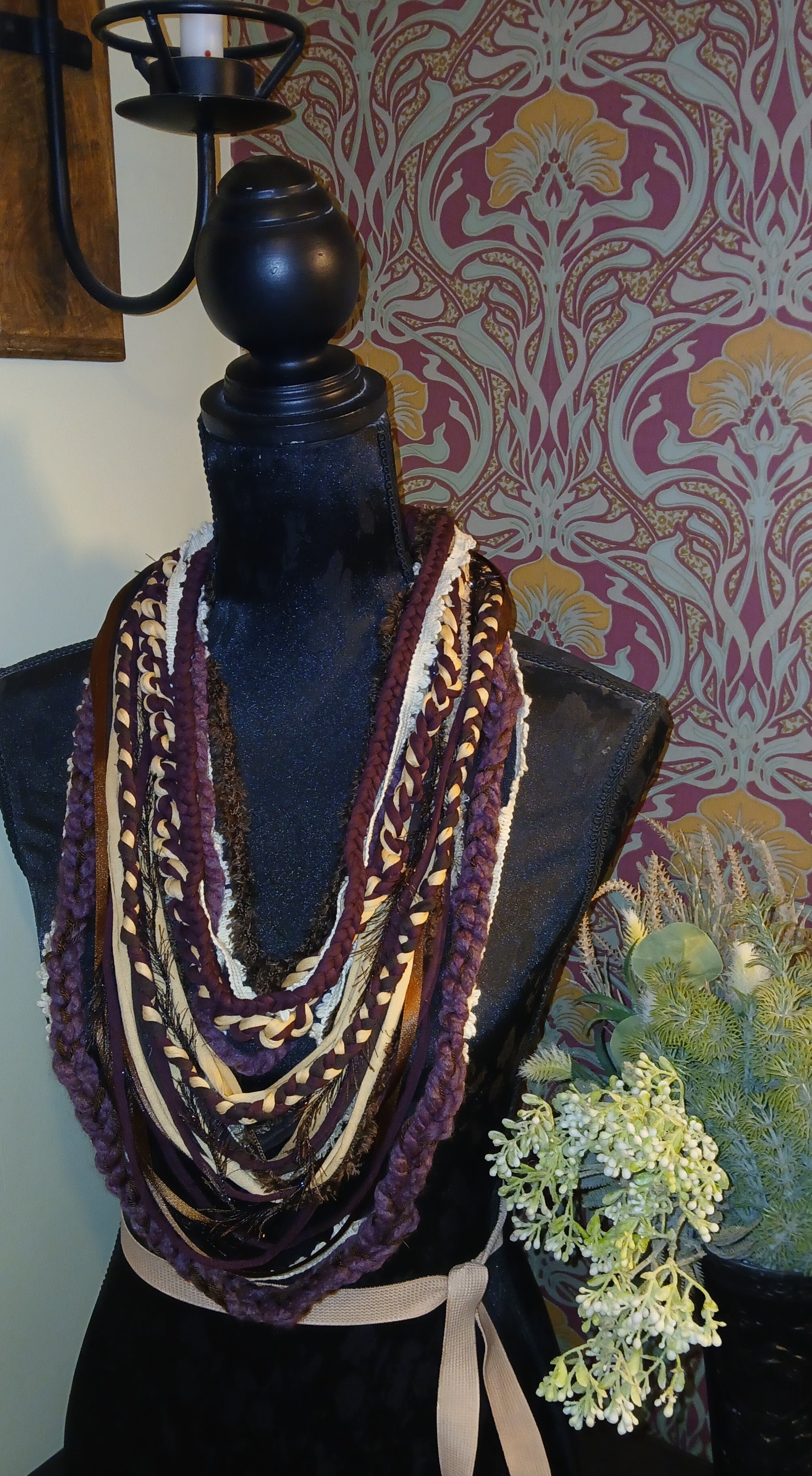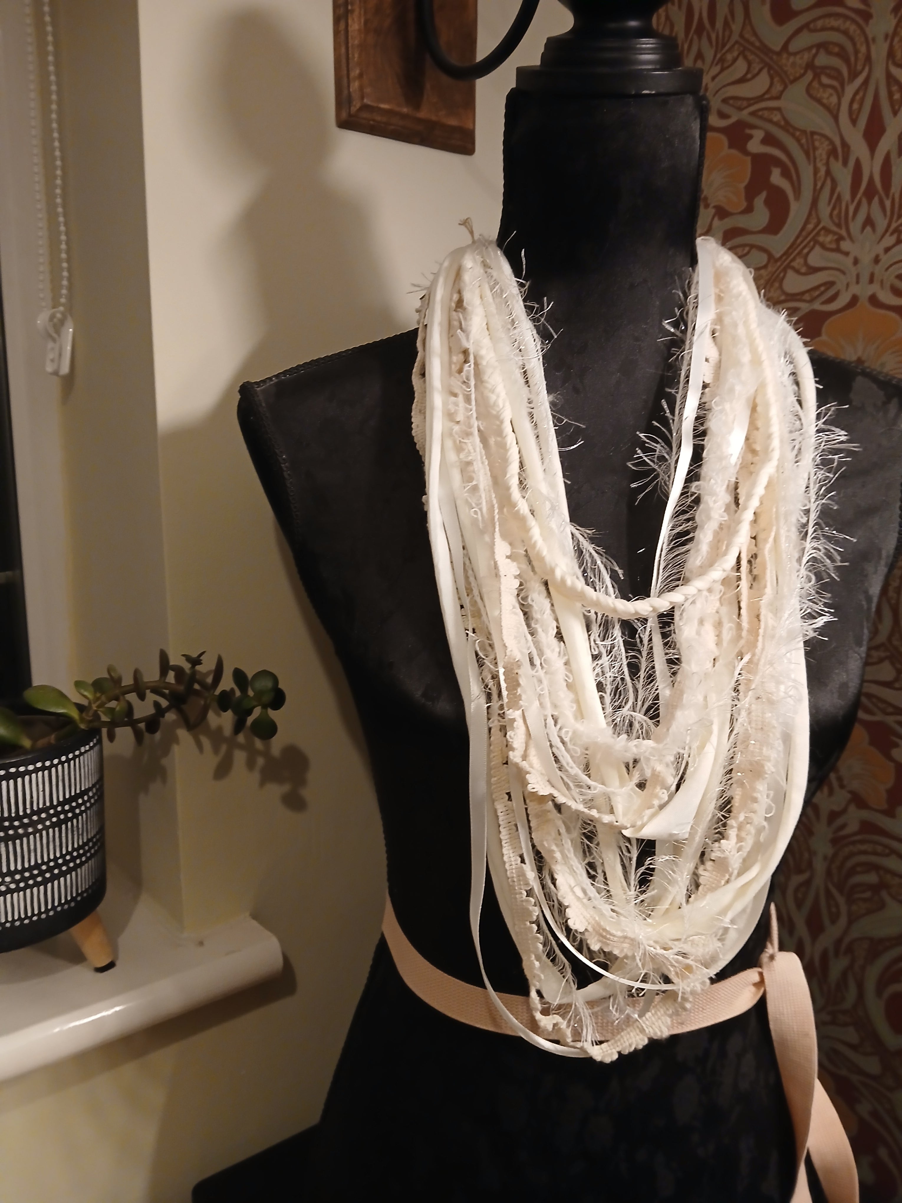 • Ashen, Gothic/boho Handmade Cowl Length Infinity Scarf
