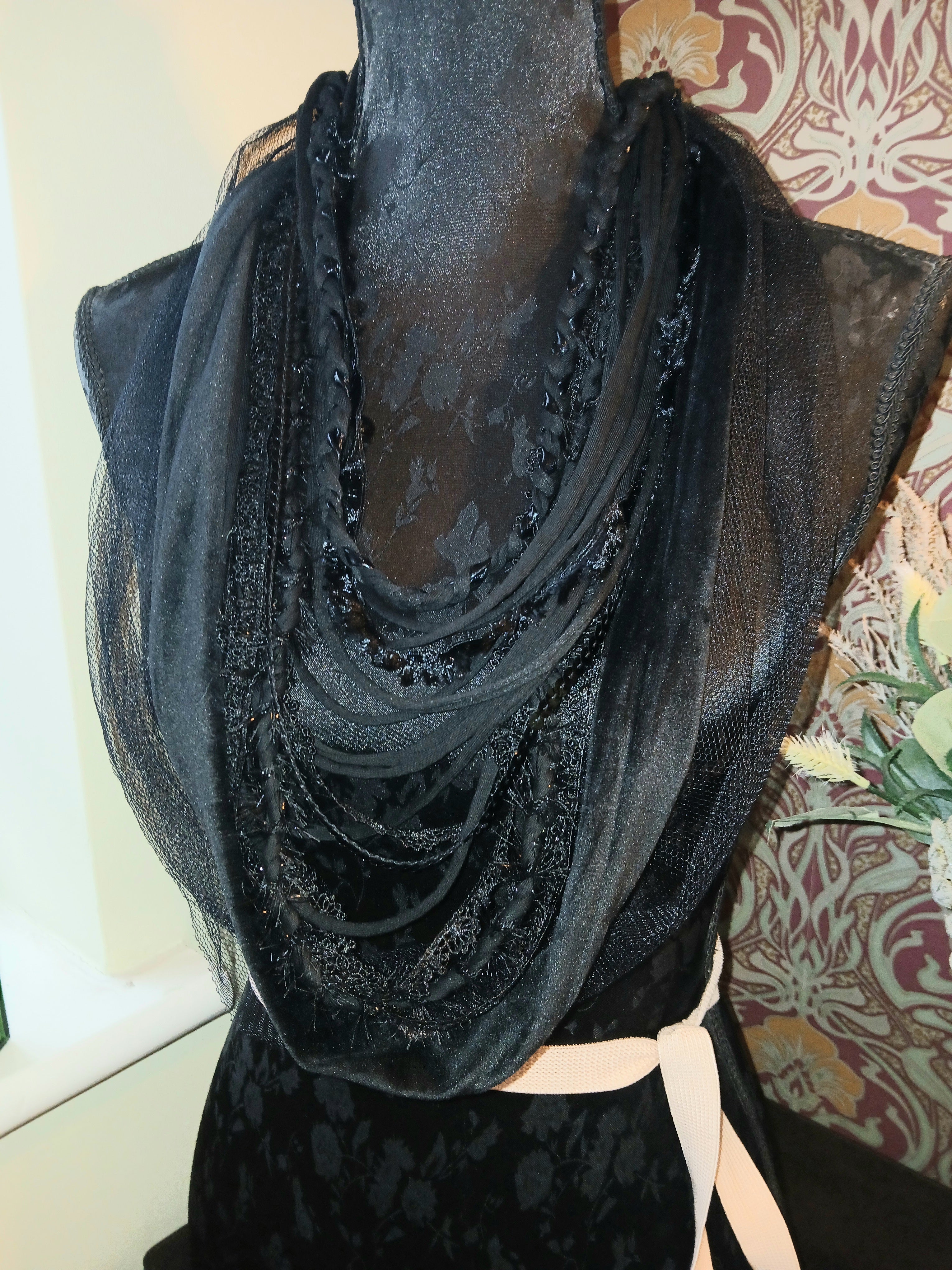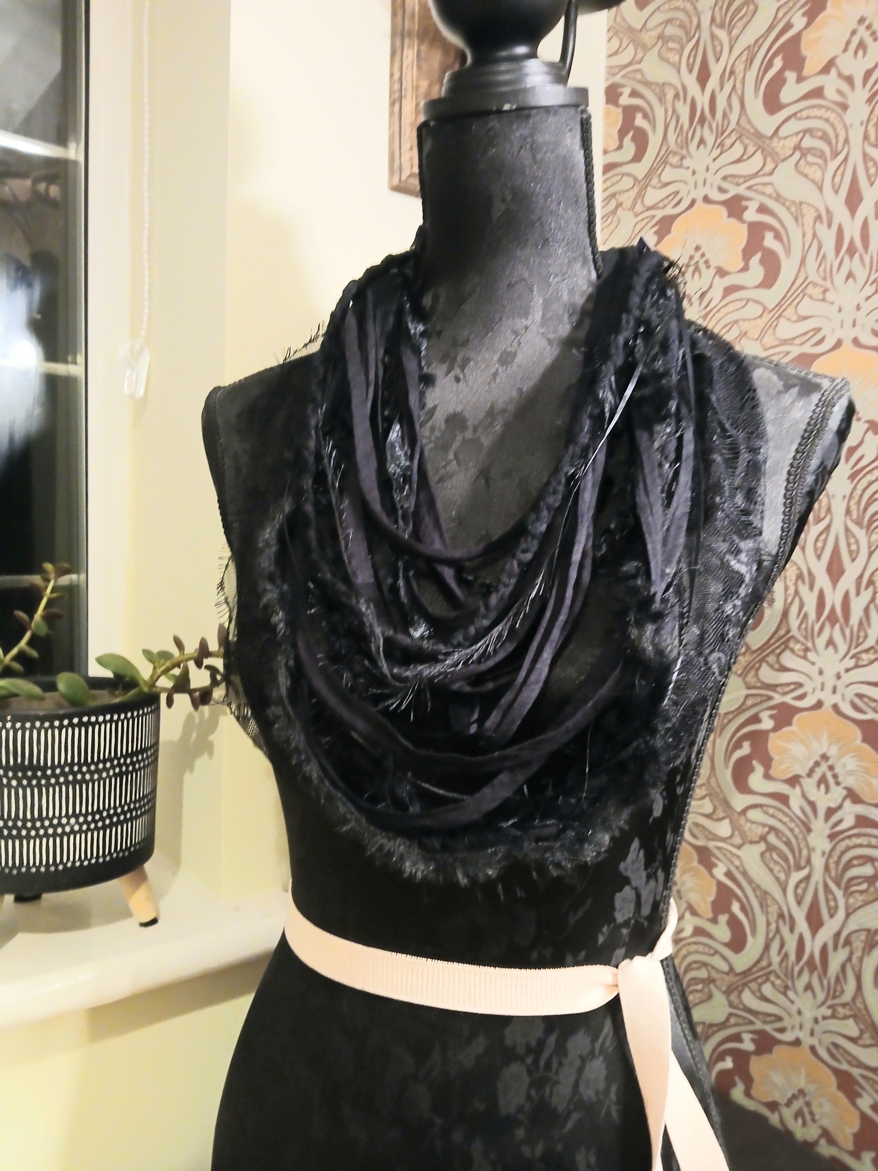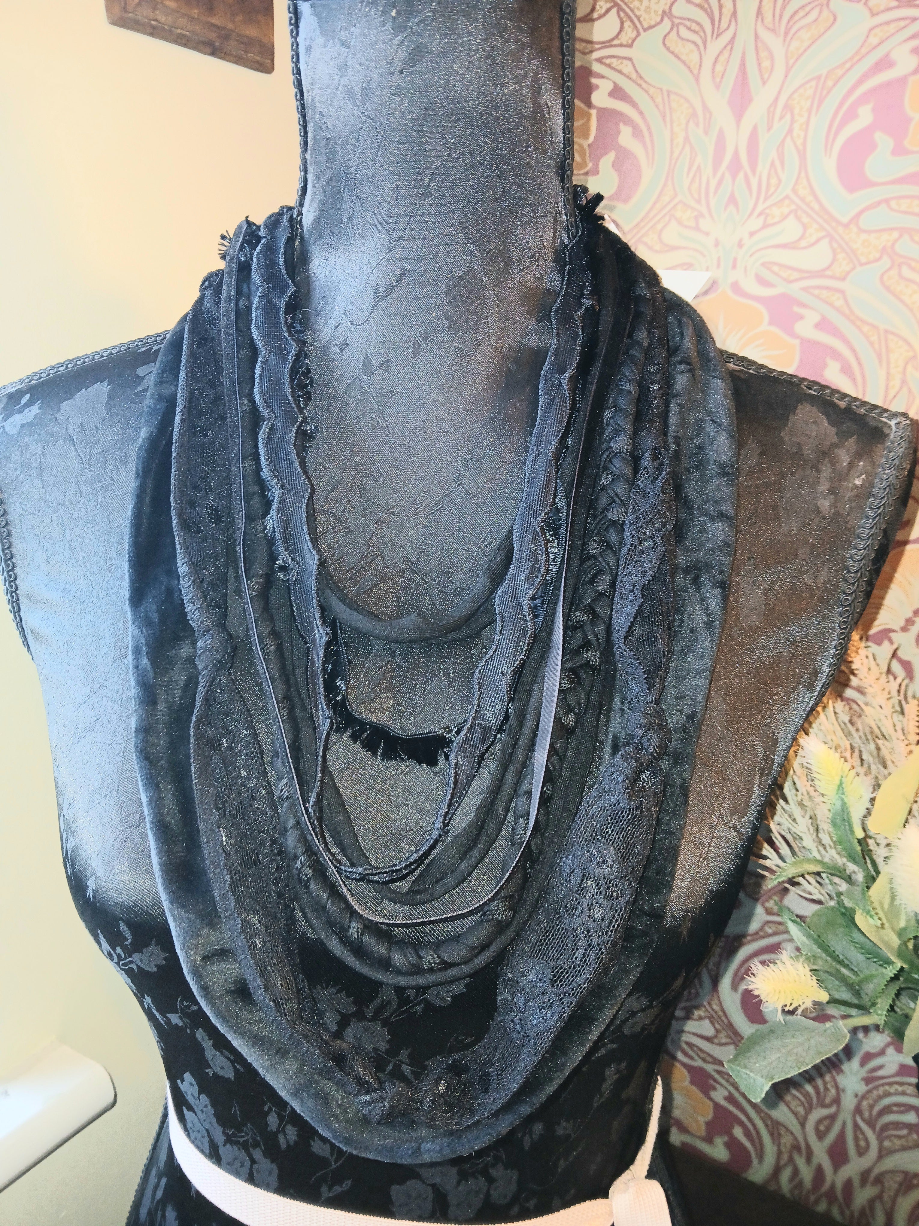 Ashen, Gothic/boho Handmade Cowl Length Infinity Scarf
