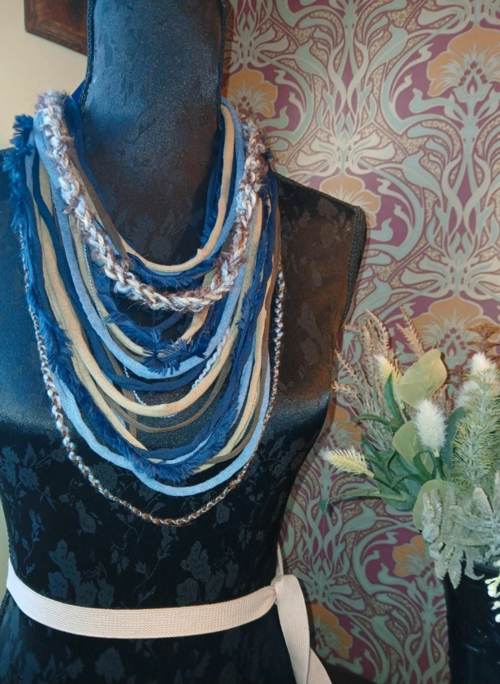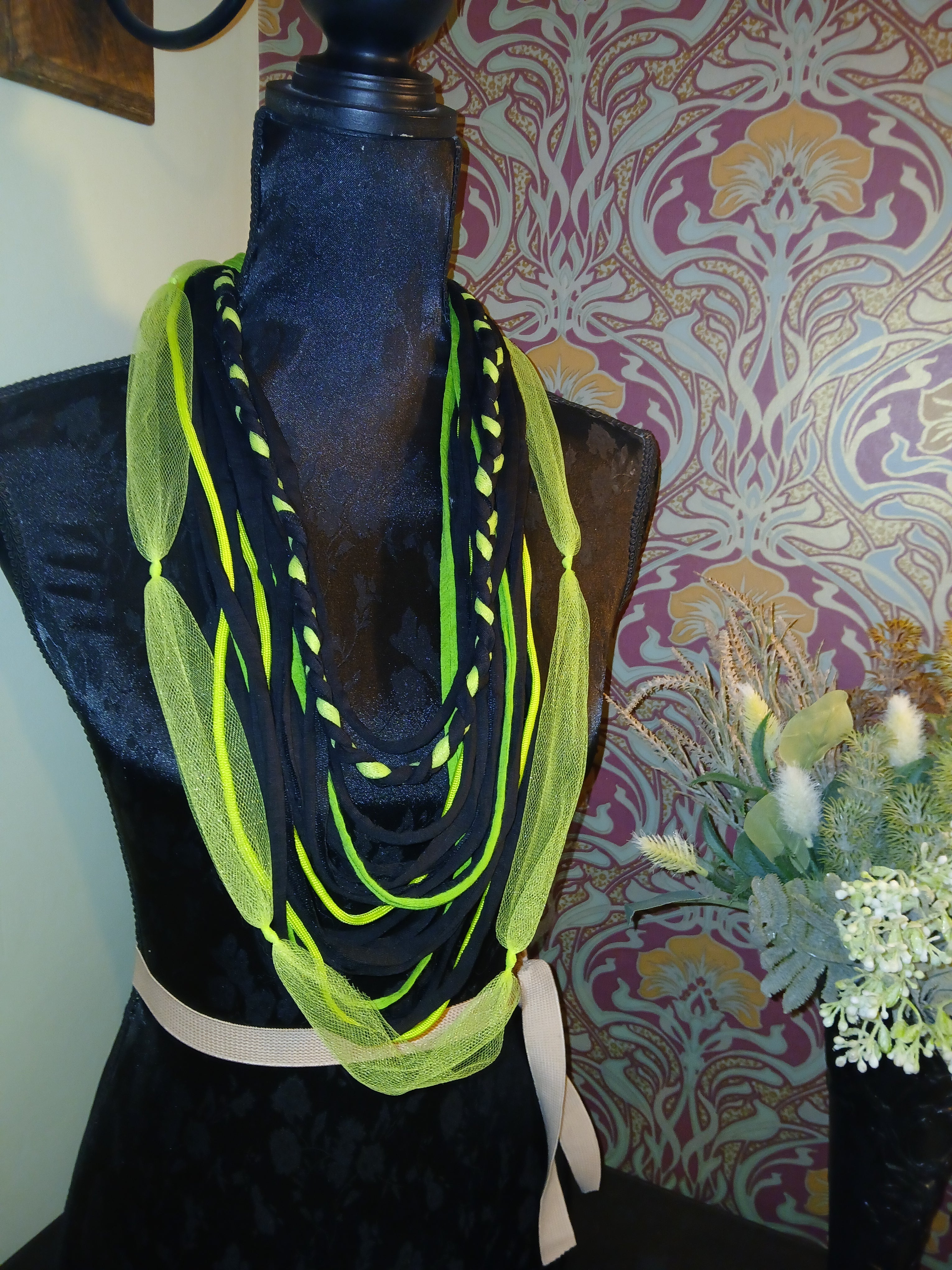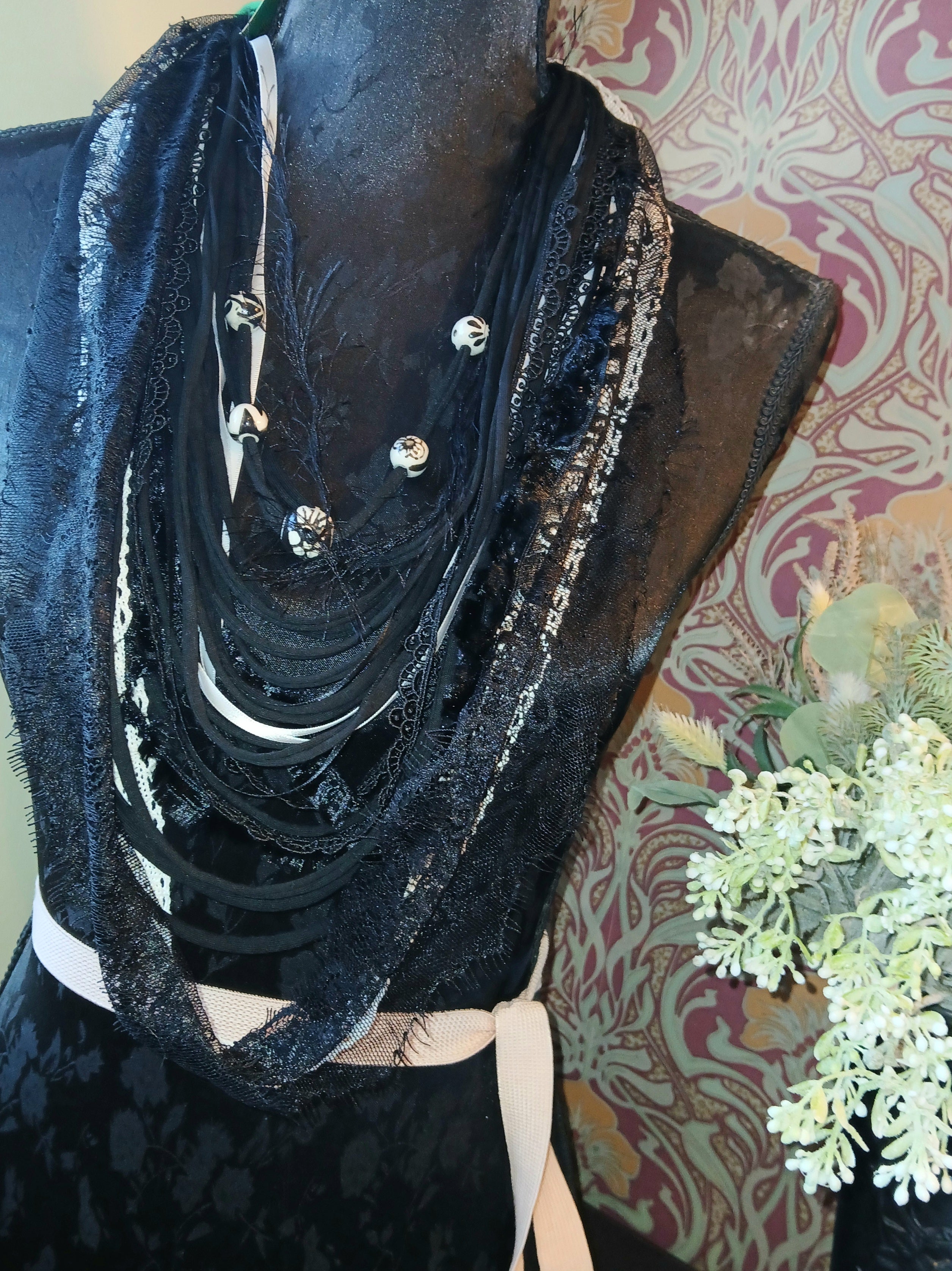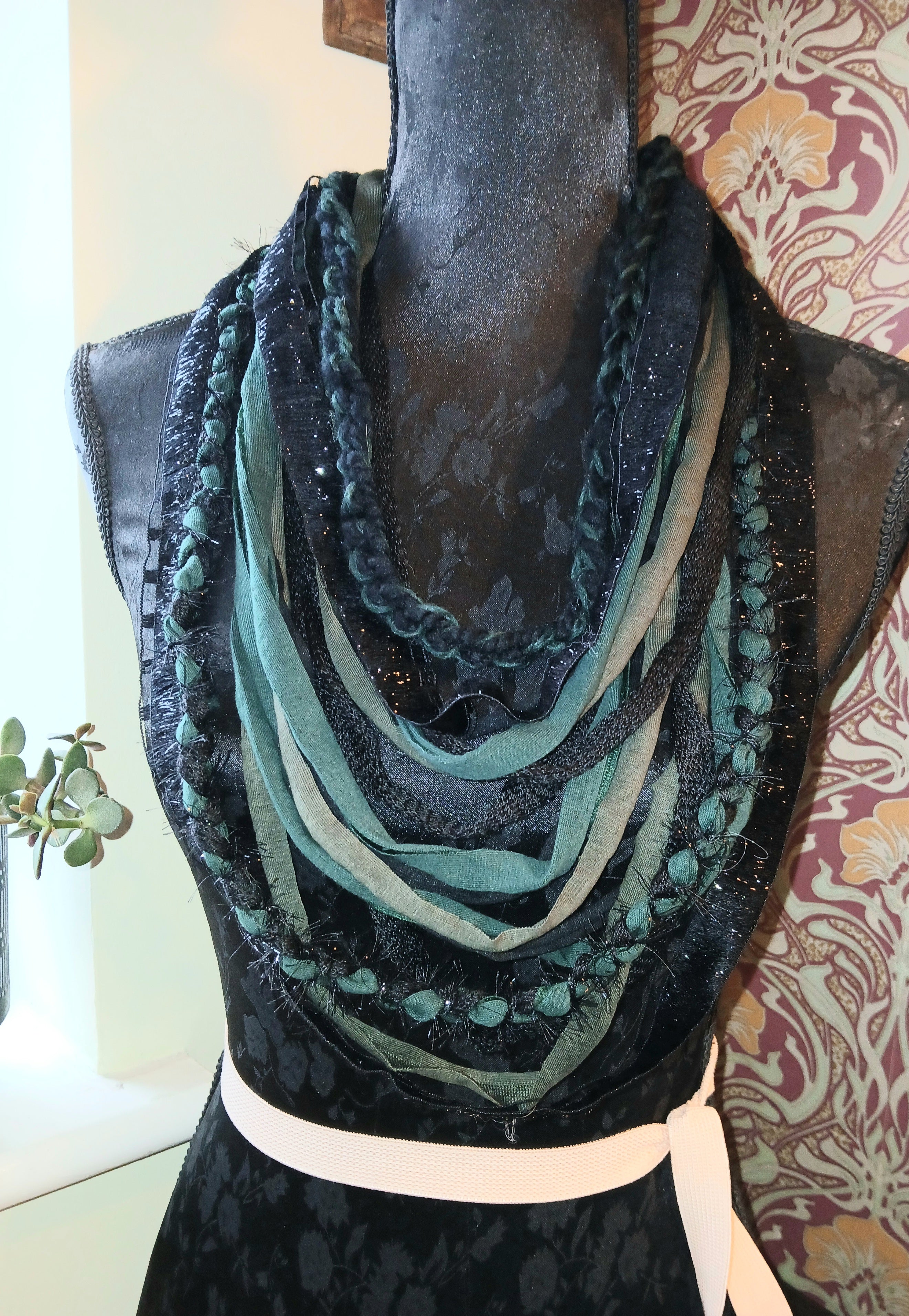 • Absinthe, Unique Handmade Gothic Fabric Necklace