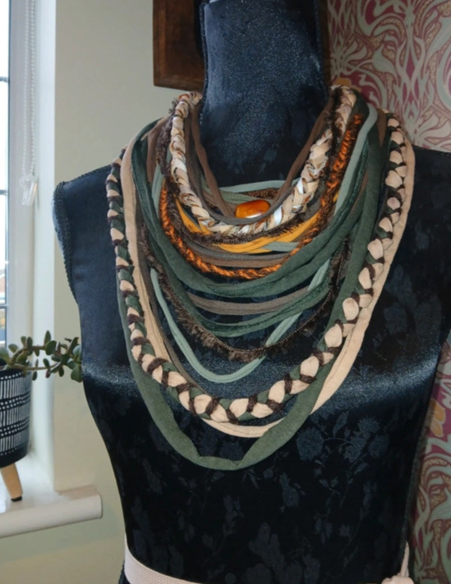 Absinthe, Unique Handmade Gothic Fabric Necklace